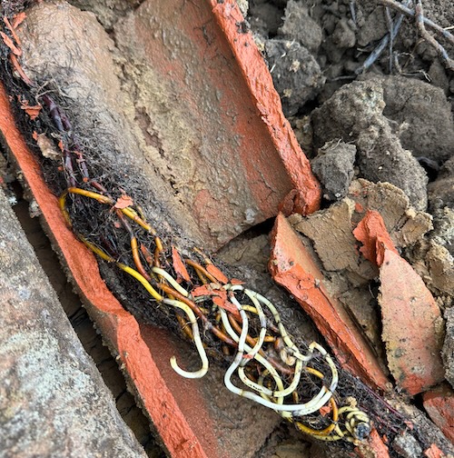 Horsetail rhizomes infiltrate drainage pipes through existing cracks and loose joints. Once inside, they continue growing and cause blockages that disrupt water flow. This compromises drainage system efficiency and increases the risk of flooding and water-related property damage. The fibrous, thin nature of the rhizomes allows them to penetrate small gaps, but this same quality makes them extremely difficult to extract without breaking them into fragments that can regenerate.